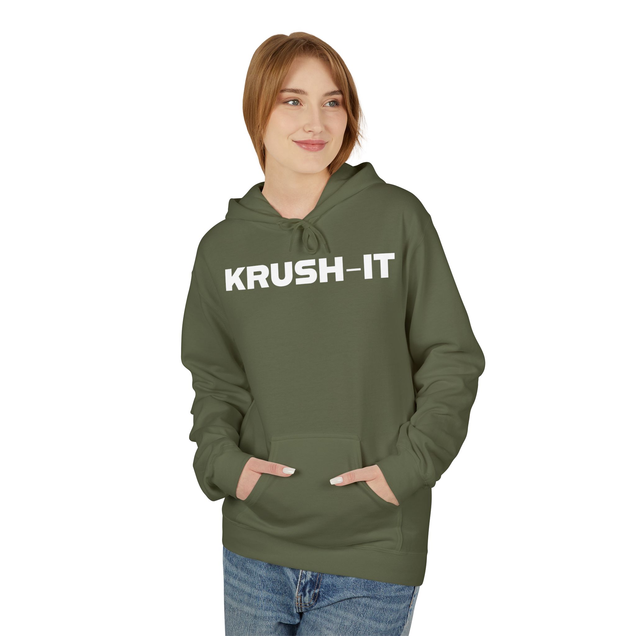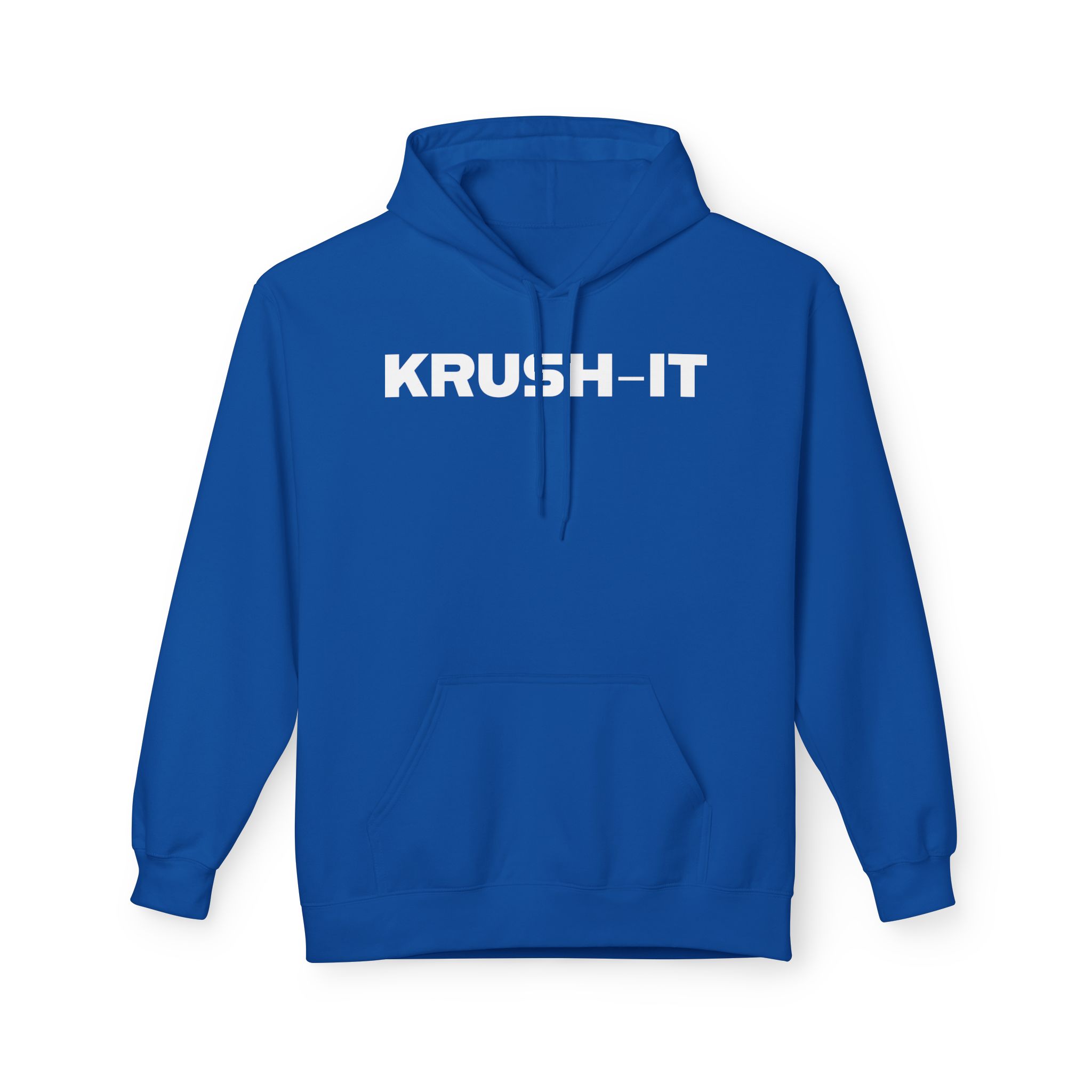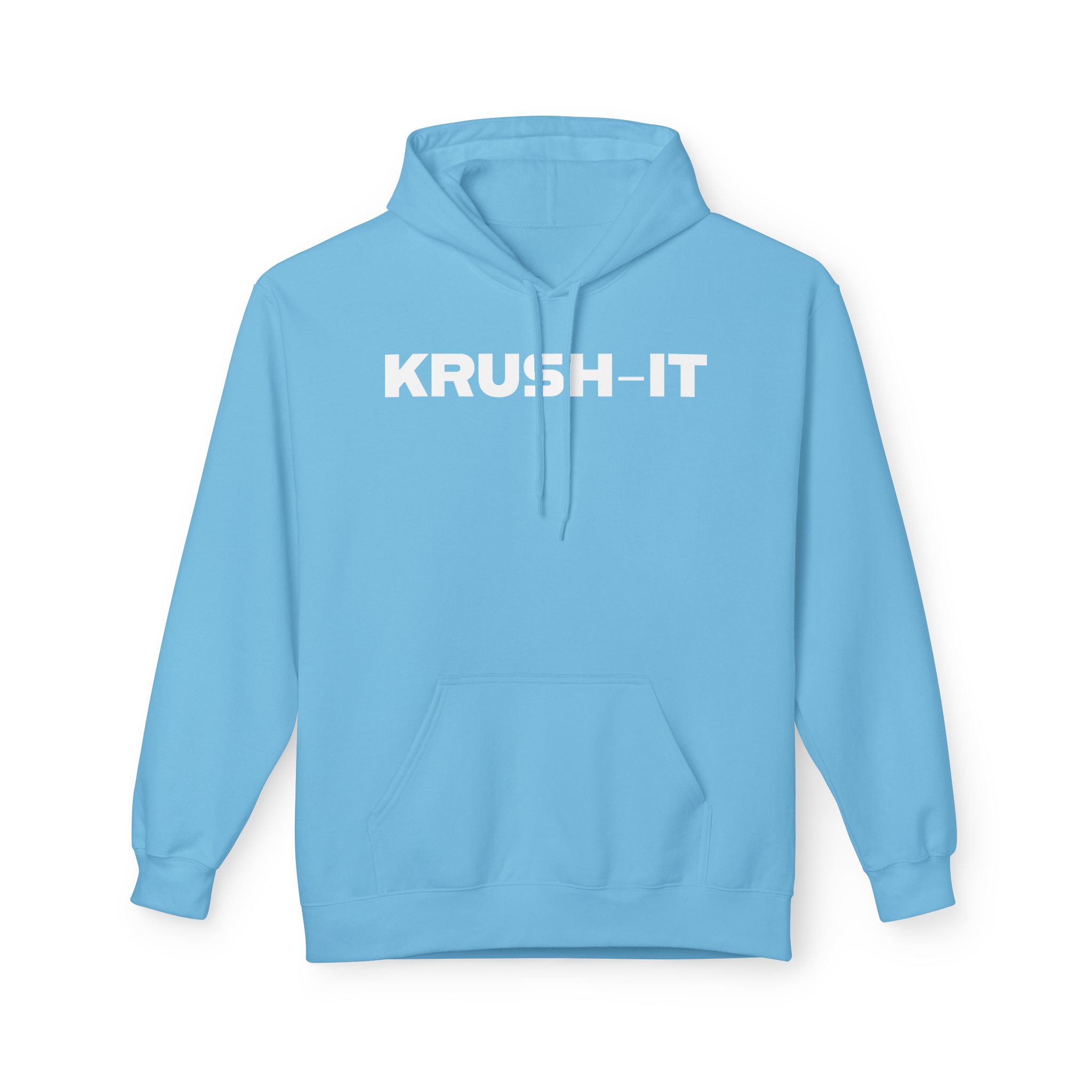 This midweight fleece hoodie speaks quiet confidence. Clean, minimalist lettering across the chest says ‘KRUSH-IT’ in a straightforward, bold type — a subtle nudge to move forward, take action, and keep momentum. The relaxed silhouette with dropped shoulders and a roomy pouch pocket makes it equally good for early-morning workouts, late-night study sessions, or slow coffee runs. The two-piece, color-matched jersey hood adds warmth without bulk. Made with a soft, substantial fabric that holds its shape, and produced under OEKO-TEX, FLA and WRAP standards, it’s a responsible wardrobe piece that blends comfort, durability, and understated motivation.