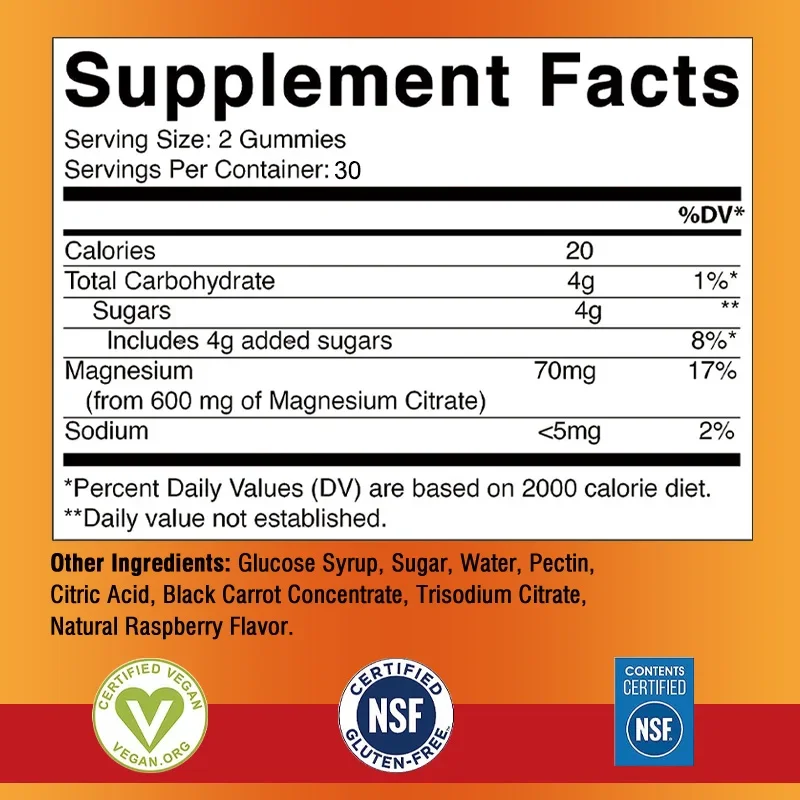 Overall Health and Nutrient Metabolism: This magnesium citrate supplement aids in the metabolism and utilization of vitamins B6, C, E, and more.