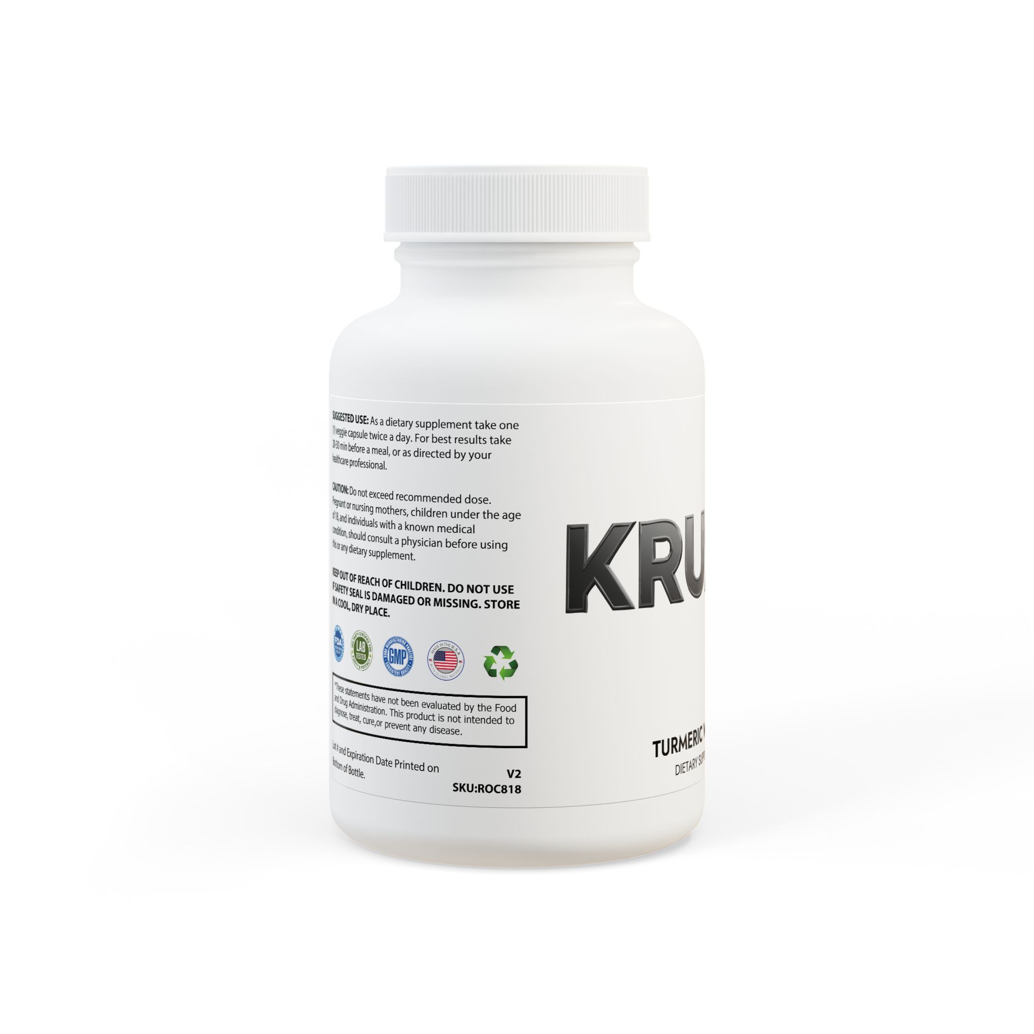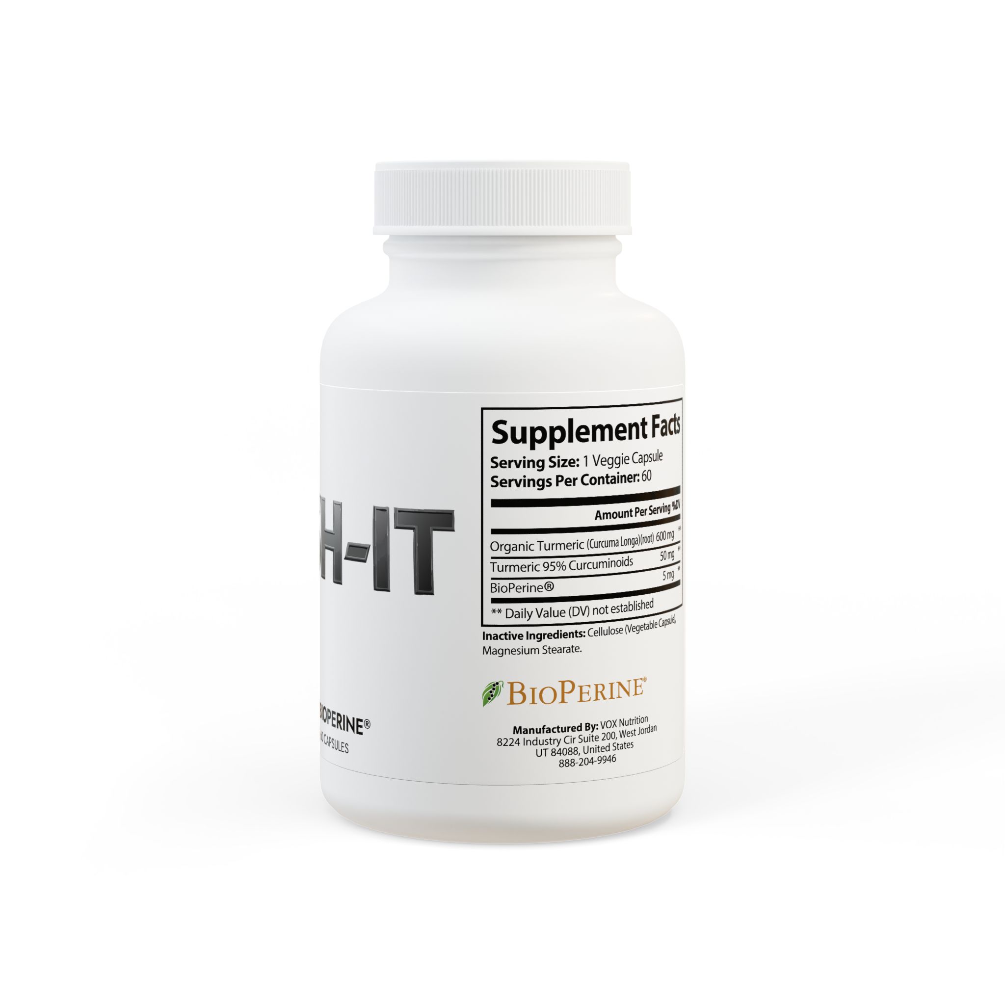 Ingredients: Organic Turmeric (Curcuma Longa)(root), Turmeric 95% Curcuminoids, BioPerine. Inactive Ingredients: Cellulose (Vegetable Capsule), Magnesium Stearate.